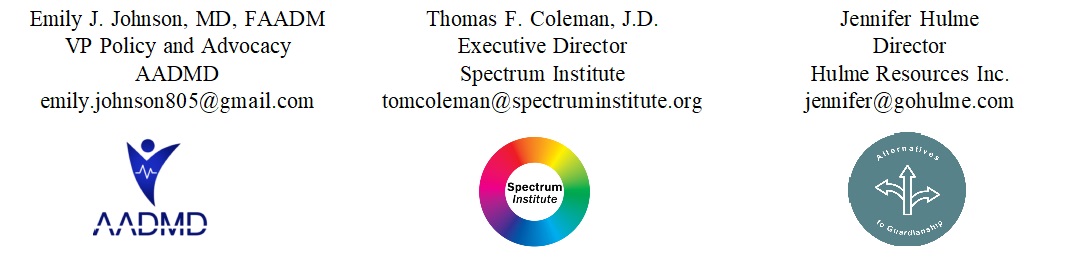 The American Academy of Developmental Medicine and Dentistry, Spectrum Institute, and the Alternatives to Guardianship Project have convened a workgroup to explore medical decision-making options available to adults with developmental disabilities. Workgroup participants include a wide range of stakeholders in Missouri, including self advocates and parent advocates, as well as representatives from disability rights advocacy groups, disability services organizations, state and local government agencies, university professors, and professional and trade associations representing the interests of a variety of health care providers. The workgroup will identify ways in which patients, families, and providers can work together to protect the medical rights of this patient population while also respecting the ethical and legal duties of health care professionals. |